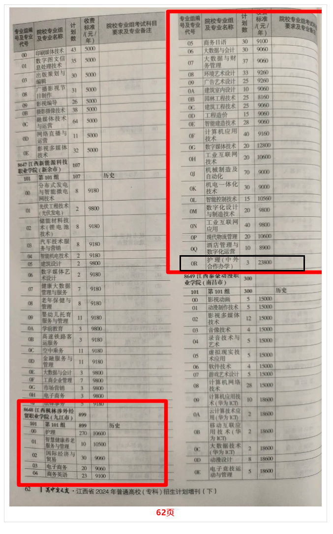 2024年江西省招生专业及招生计划数