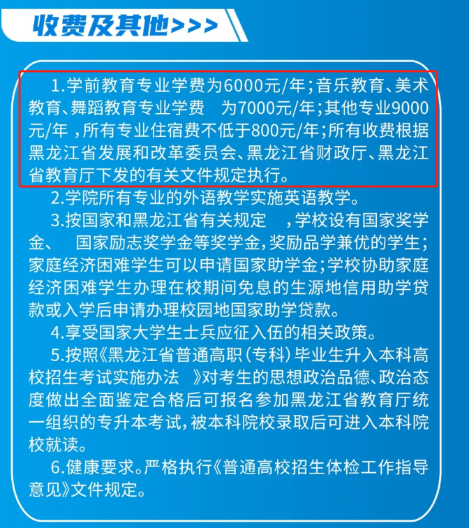 2024黑龙江艺术职业学院艺术类专业学费:音乐教育、美术教育、舞蹈教育专业学费为7000元/年,其它专业9000元/年;住宿费:不低于800元/年。以下是各专业收费标准,供大家参考。
